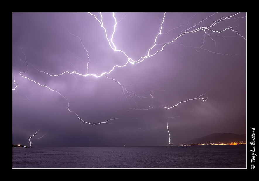 |  Un orage d'air froid provoque d'immense éclair au-dessus du golfe d'Ajaccio (Corse - 14/11/2007).